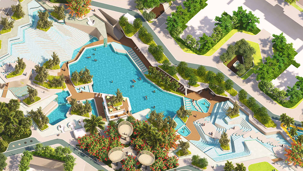 - Swimming Pools: Including an Olympic-sized pool and a unique floating sauna.